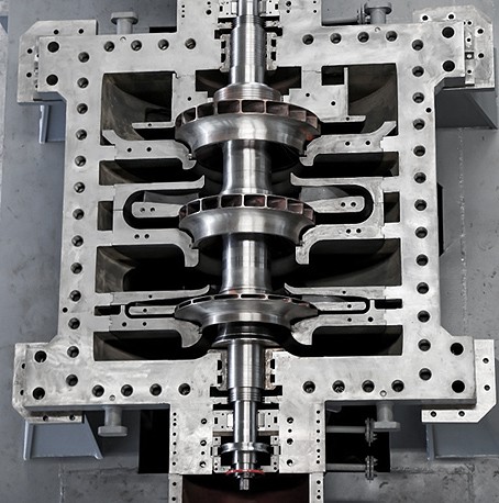 Монолитная стальная рама: корпус турбины и редуктора смонтированы на едином основании, 100% предварительная сборка на заводе, высокая точность монтажа и быстрый ввод в эксплуатацию.